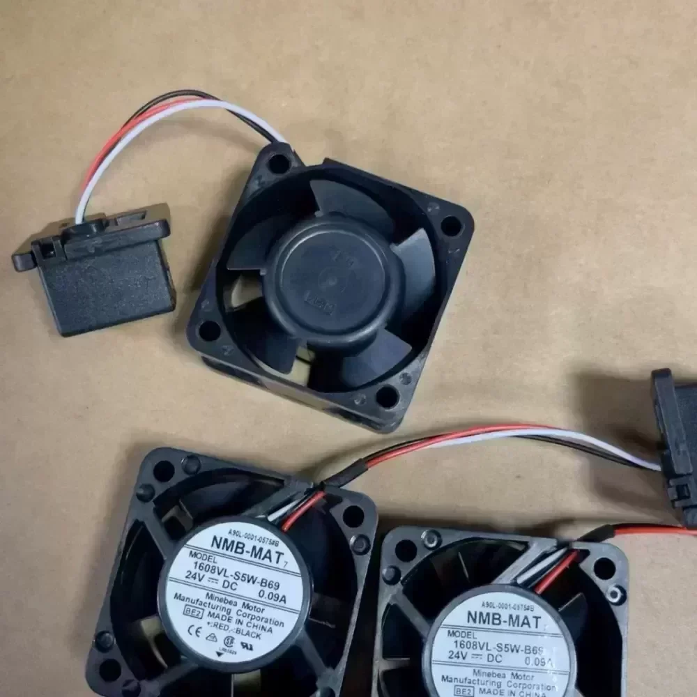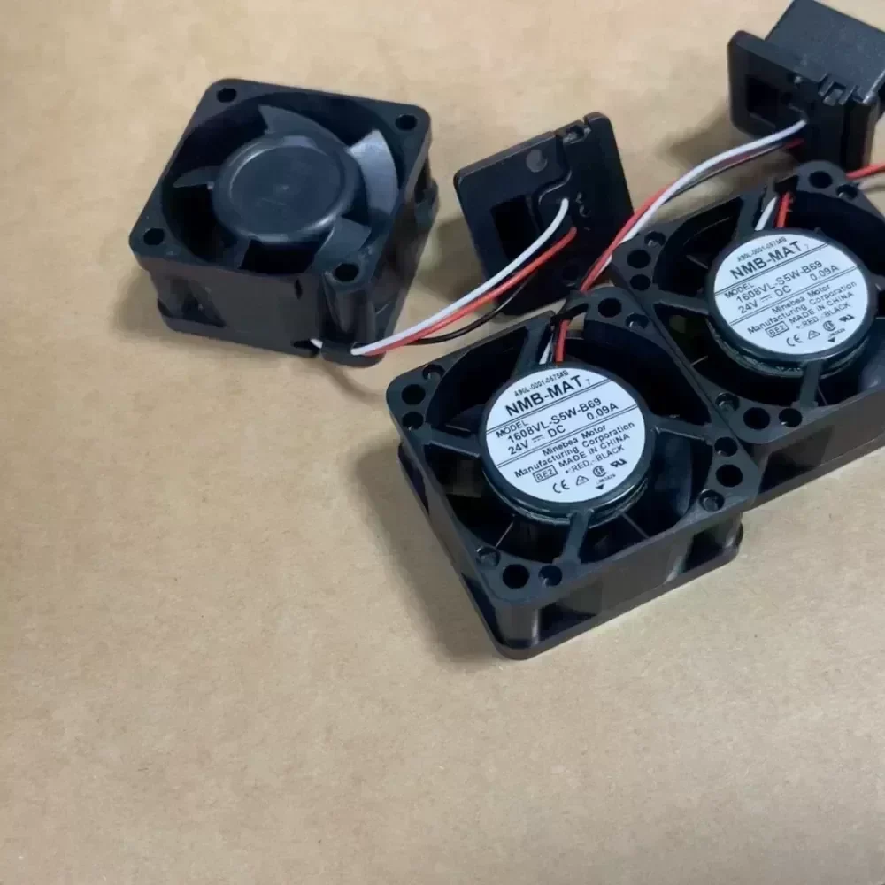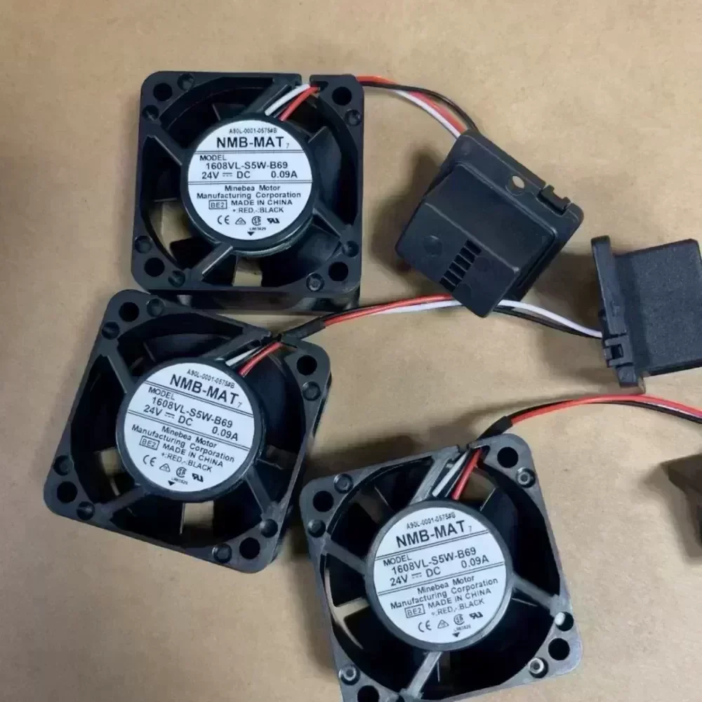 Out of idle NMB-MAT 1608VL-S5W-B69 fan, new unused, 24V, 0.09A, from NMB motor in Japan., Suitable for use in FanuTech or other related applications.