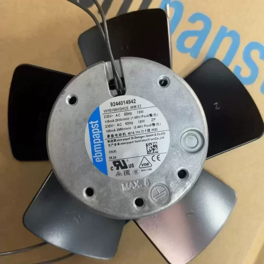 Brand new original German ebmpapst fan, model number 4656EZ. Suitable for computer coolers, voltage 230V AC, 50Hz, power 19W, current 115mA, speed range 2600-3600rpm. This fan has stable performance and is suitable for use with a variety of devices.
