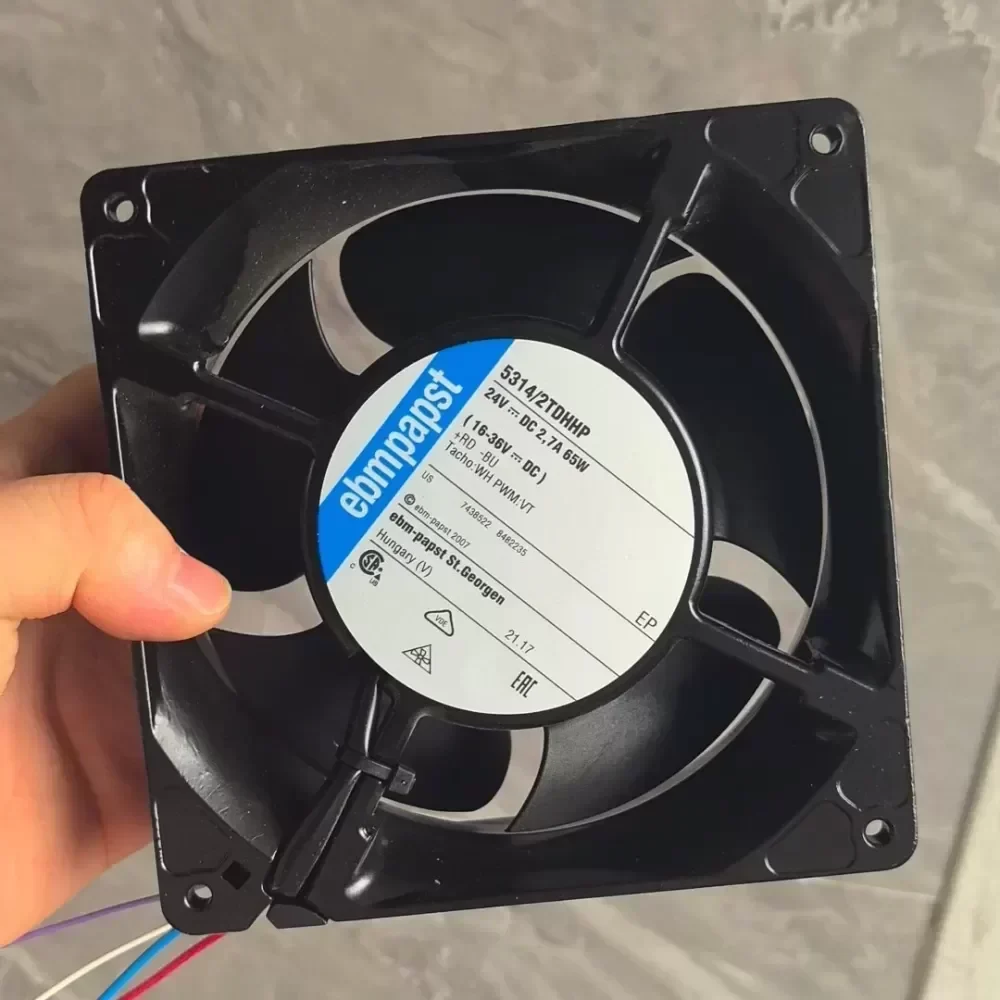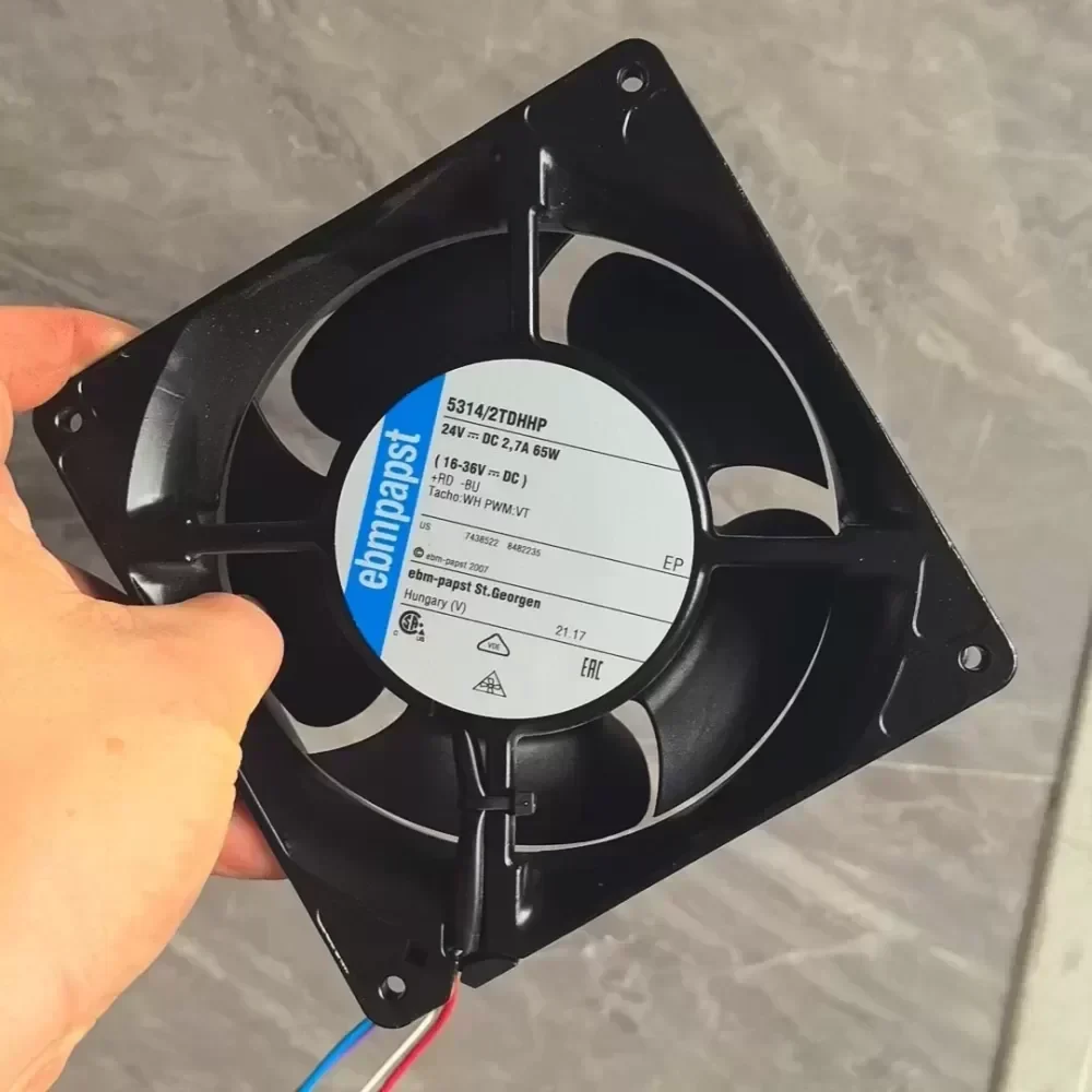 The ebm-papst 5314/2TDHHP is a high-performance S-Force series DC axial fan engineered for intensive industrial thermal management. Operating at a nominal 24 VDC with a power consumption of 65W, this 140mm unit delivers exceptional airflow and static pressure, making it a critical component for high-density electronic enclosures and server racks. Its robust construction and advanced motor technology ensure long-term reliability in continuous operation environments.