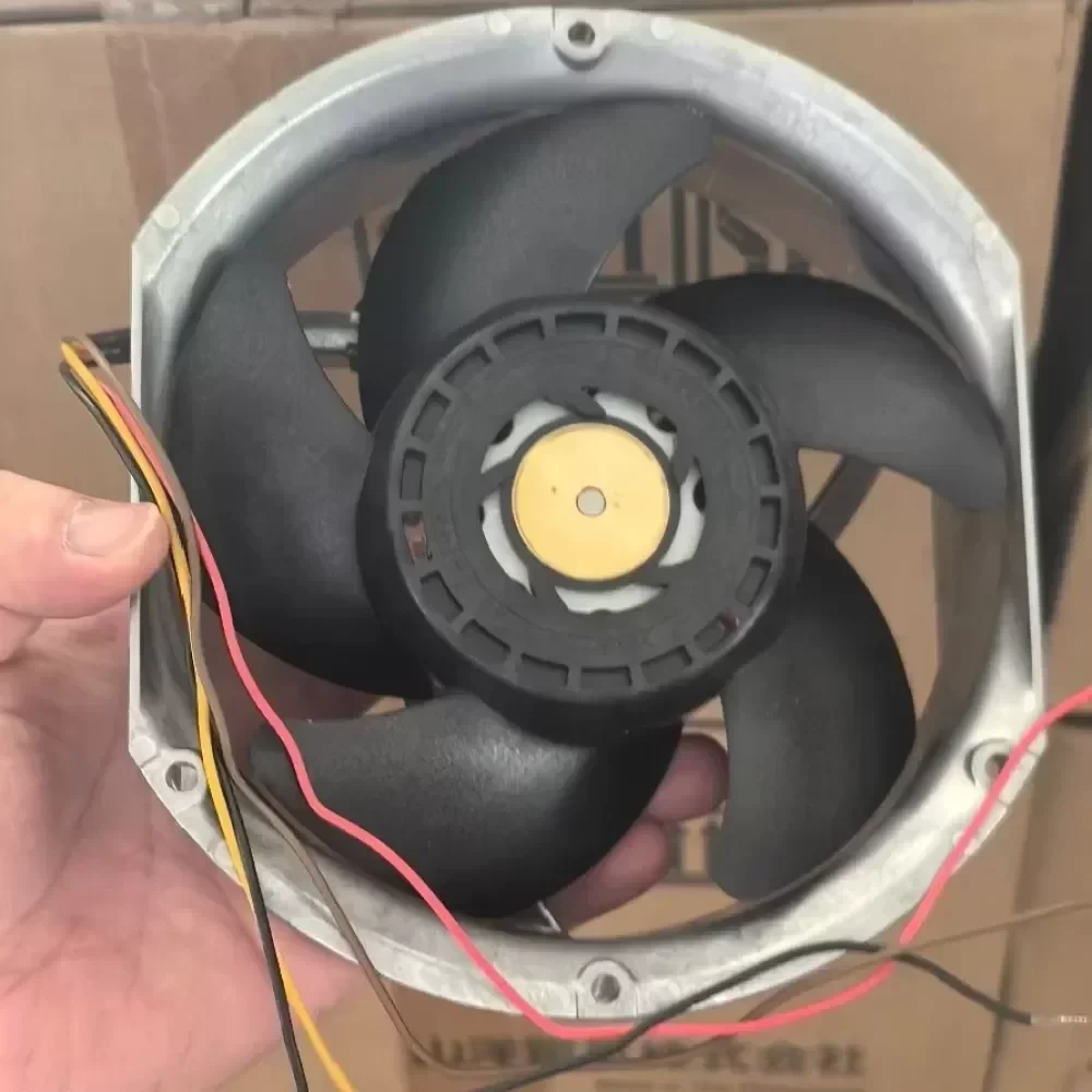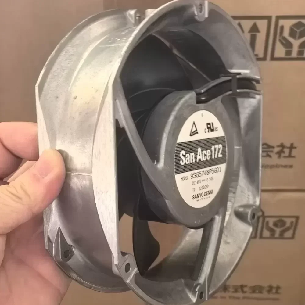 The Sanyo Denki San Ace 172, model 9SG5748P5G01, is a high-performance industrial cooling solution engineered for high-density thermal management. This 172mm x 150mm x 51mm fan is constructed with a robust all-aluminum shell, providing superior structural integrity and enhanced heat dissipation compared to standard composite frames. The specialized double blade design is optimized to deliver maximum airflow and high static pressure, ensuring efficient cooling in high-impedance environments.