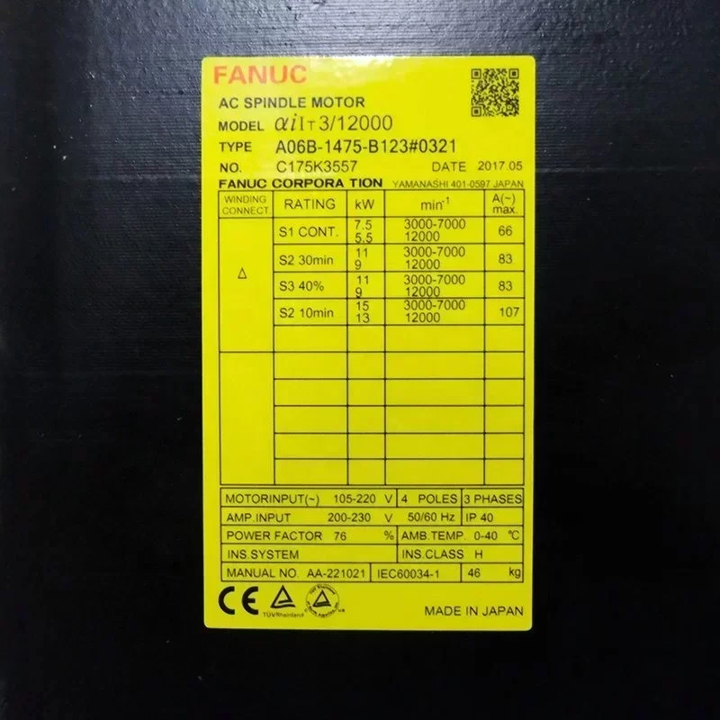 Original A06B-1475-B123 Fanuc Servo Motor A06B1475B123 Ac Motor