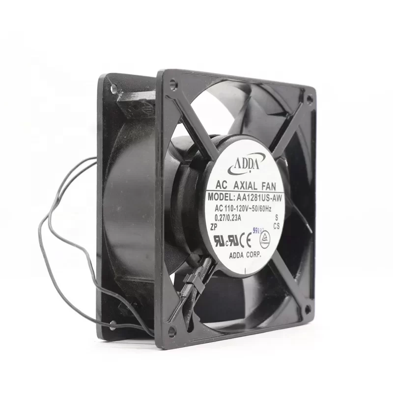 The ADDA AA1281US-AW is a high-performance industrial axial cooling fan engineered for reliable thermal management in heavy-duty applications. This 120 x 120 x 38 mm unit operates on a 115 VAC power source, drawing 0.27 A to deliver a robust airflow of 96 CFM. Designed with a dual ball bearing system, the AA1281US-AW offers superior durability and a significantly longer service life compared to sleeve bearing alternatives, making it ideal for continuous 24/7 operation in critical environments.