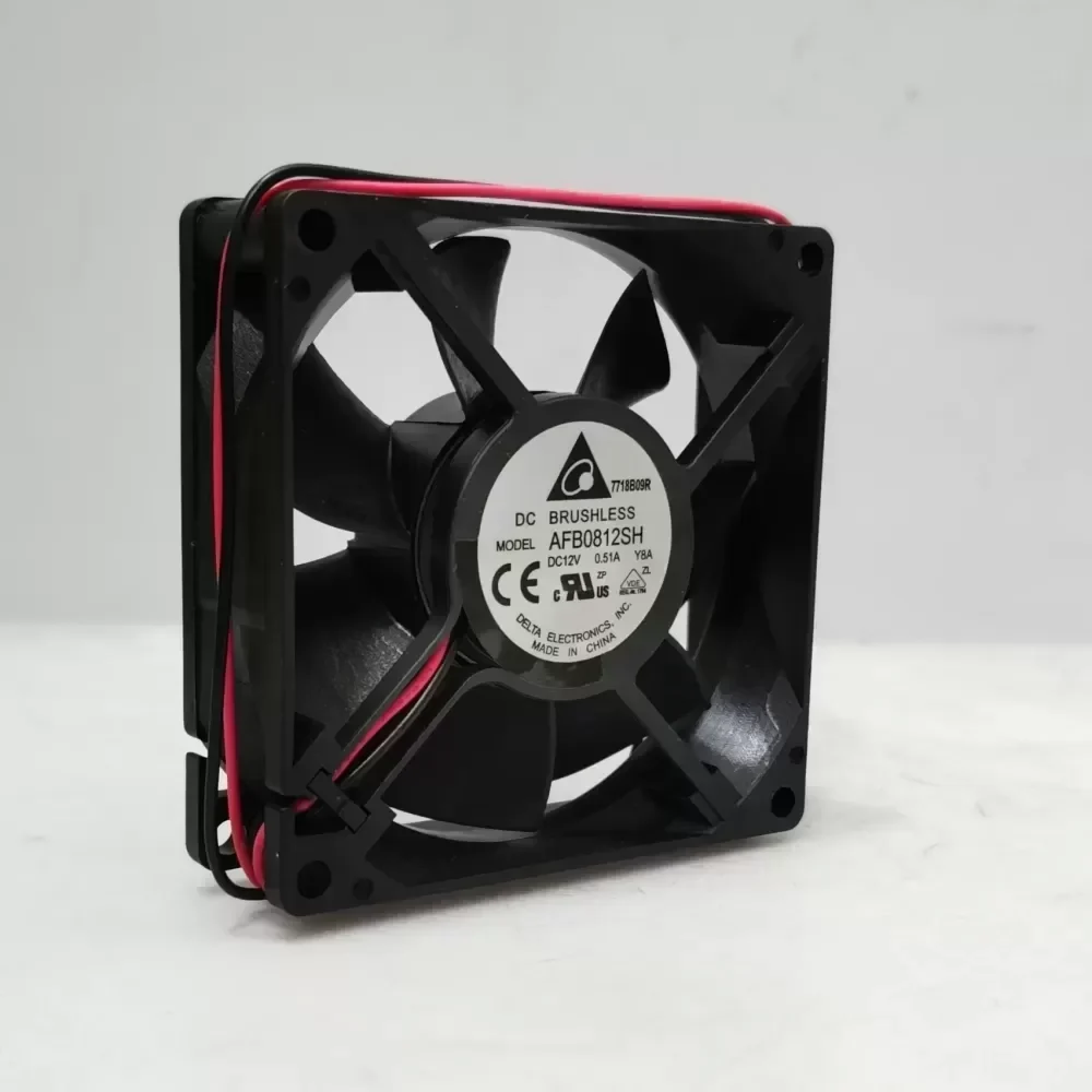 The Delta Electronics AFB0812SH is an industrial-grade DC axial cooling fan designed for high-density thermal management in continuous-duty environments. Engineered with a robust 80x80x25.4mm frame, this component delivers exceptional airflow and static pressure to mitigate thermal throttling in critical electronic enclosures.