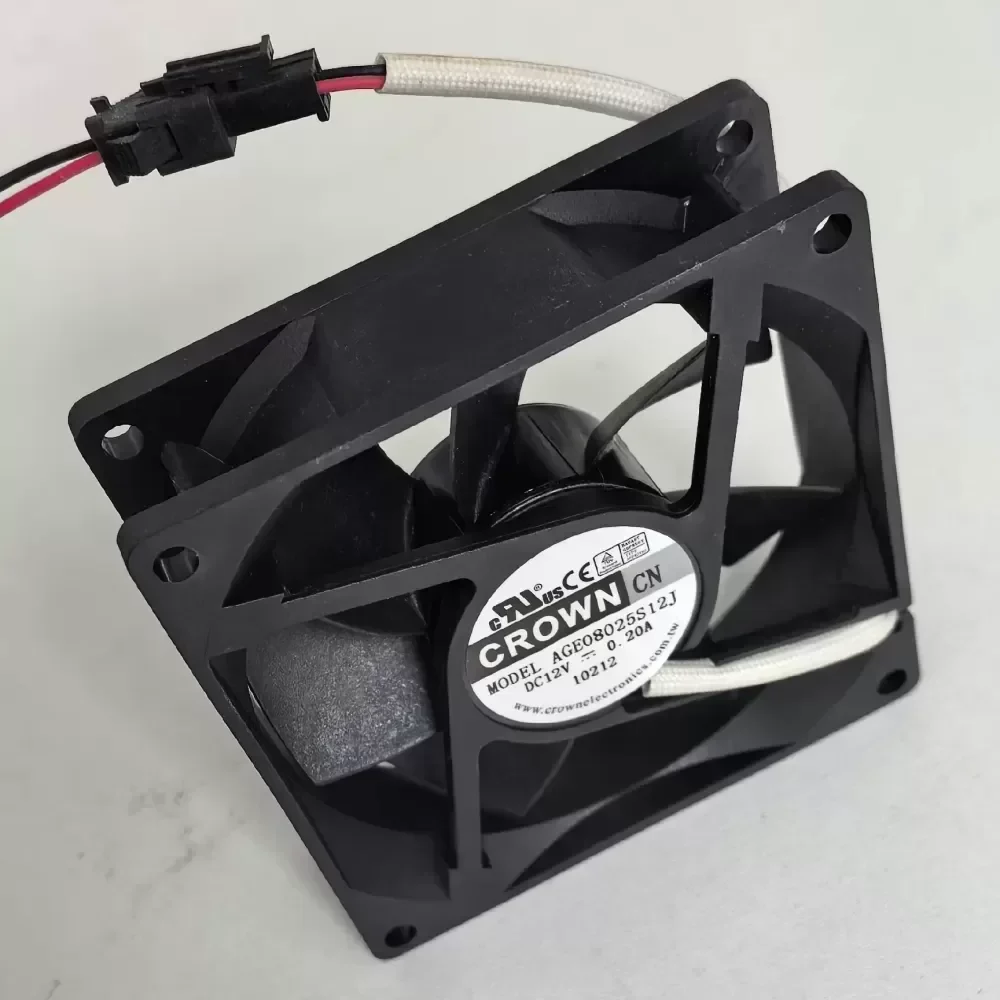 The CROWN AGE08025S12J is a precision-engineered 80mm DC axial cooling fan designed for optimal thermal management in industrial cabinets, computer chassis, and power supply units. Operating on a 12V DC power input, this silent cooling fan delivers efficient airflow while maintaining minimal acoustic noise, ensuring Original Engineering reliability for continuous operation environments.