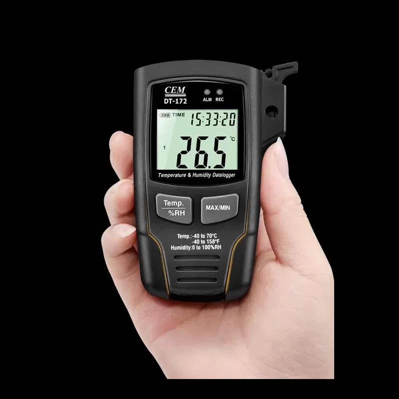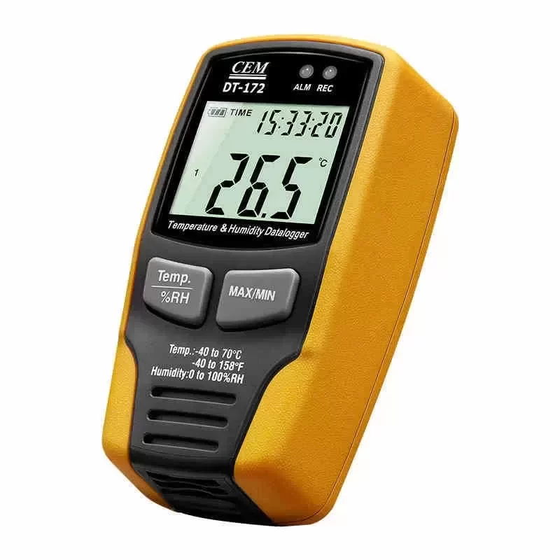 The CEM DT-172 is an industrial-grade temperature and humidity data logger engineered for precise environmental monitoring and data acquisition. Built with Original Engineering standards, this device ensures high-fidelity logging for critical climate-controlled environments, offering reliable long-term data retention and immediate visual feedback via its integrated LCD.