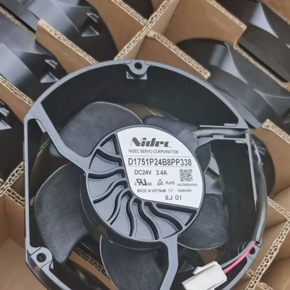 The Nidec D1751P24B8PP-388 is a high-performance industrial axial cooling fan engineered specifically for heavy-duty thermal management within ABB frequency converters and high-power inverter systems. This unit is part of the D1751P series, known for delivering high static pressure and extreme airflow velocity required for critical power electronics cooling.