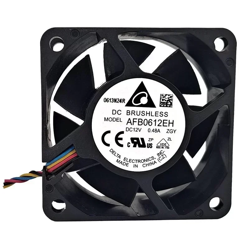 Delta AFB0612Eh-Zgy Industrial Centrifugal Fan 12V DC 0.48A Axial Flow 60*60*25.4mm 38.35CFM 6800RPM Ball Bearing Plastic Blades