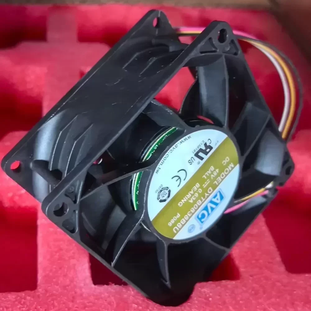 The AVC DYTB0838B8U is a high-velocity thermal management solution engineered for mission-critical B2B infrastructure. Featuring a 38mm deep-frame design, this unit generates the high static pressure required to drive airflow through high-density heat sinks and obstructed industrial enclosures. It is specifically optimized for 48V DC telecommunications racks, server power supply units (PSUs), and automated industrial control cabinets.