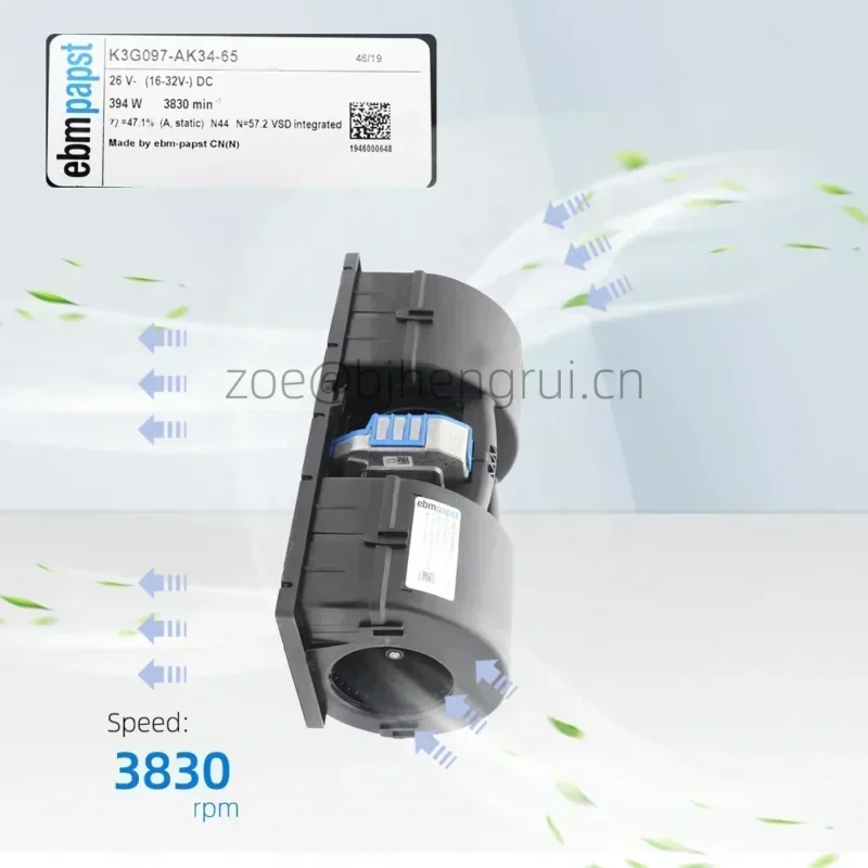 ebmpapst K3G097-AK34-65 26V DC 394W 15.2A 3830RPM Ball Bearing Car Bus Air Conditioner Evaporator Centrifugal Cooling Fan
