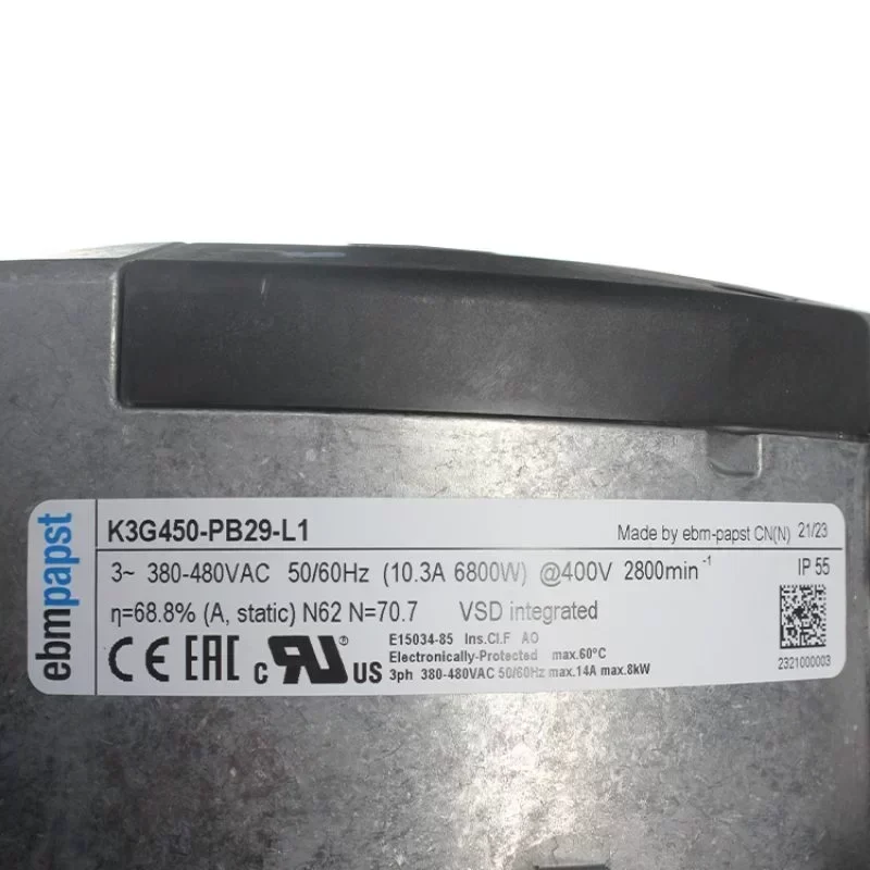 ebmpapst K3G450-PB29-L1/F01 400V 10.3A 450MM EC Plug Fan AHU Purification Centrifugal Cooling Fan FFU Cooling Fan