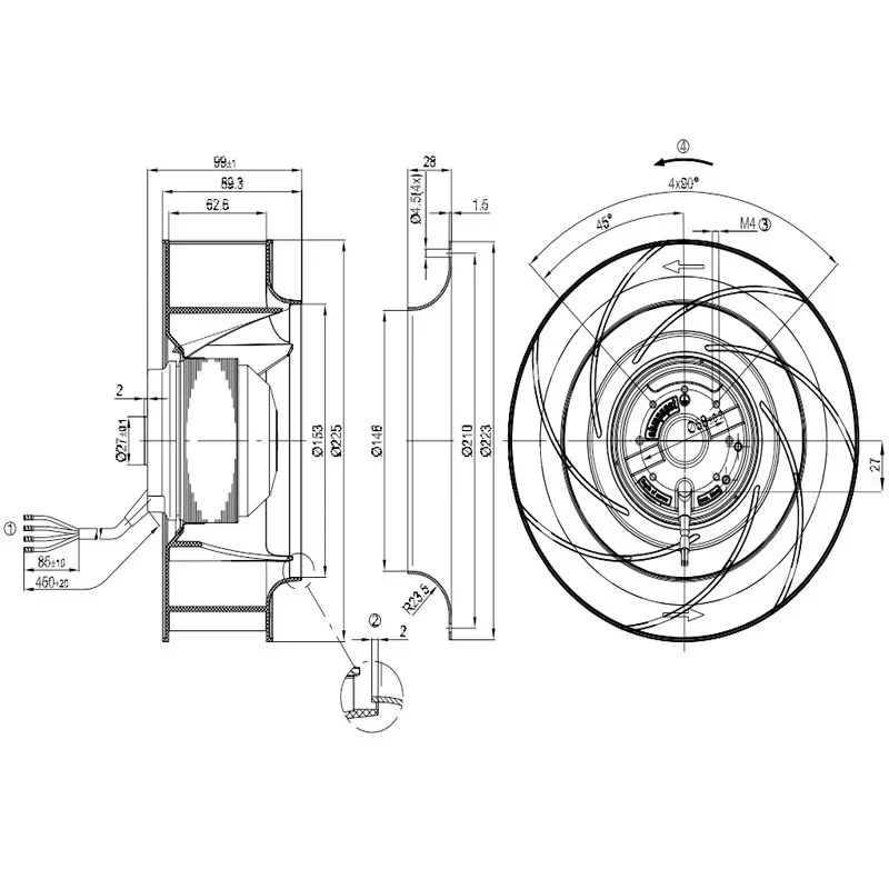 Ebmpapst R2E225-BD92-09 225mm 230V 135W 0.6A Energy Efficient Fan and Ac Centrifugal Fan for Ventilation System