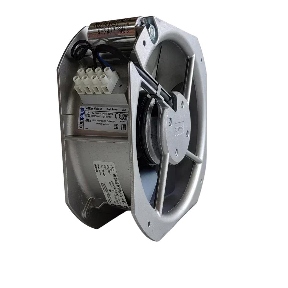 EBM-PAPST W2E200-HK86-01 200mm AC Axial Fan Stainless Steel Blades 115V 2550rpm 64W IP44 Germany Design Ball Bearing Electric