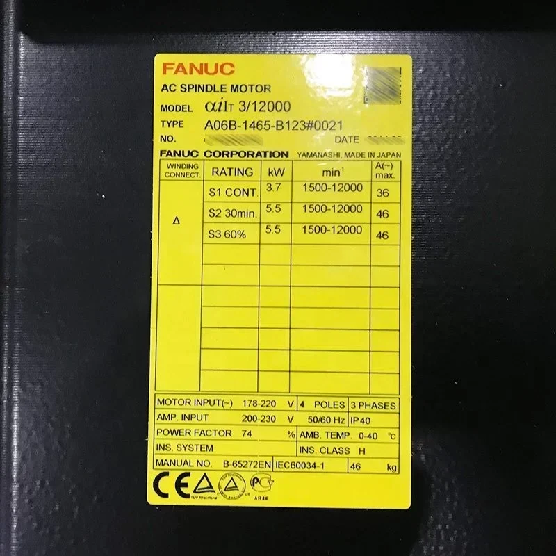 Original Fanuc Cnc Spindle Ac Motor A06B-1465-B123