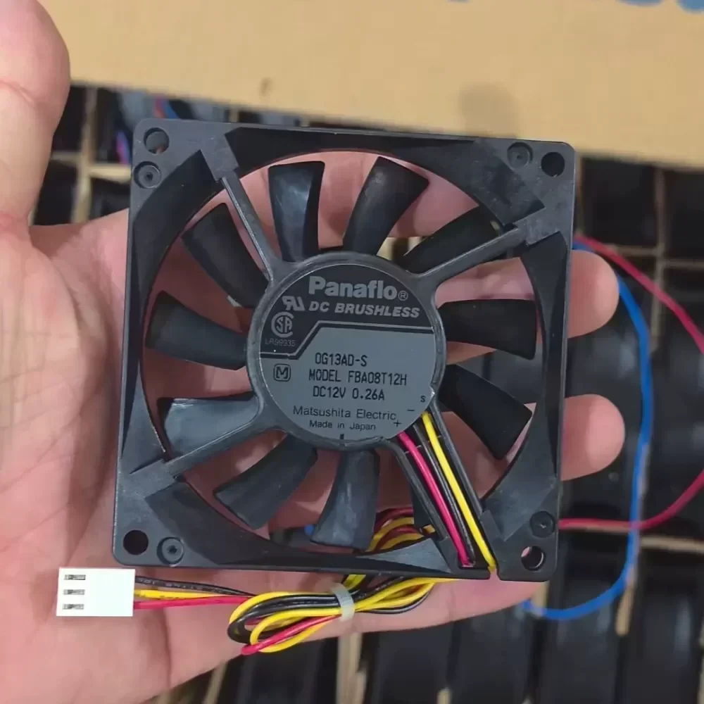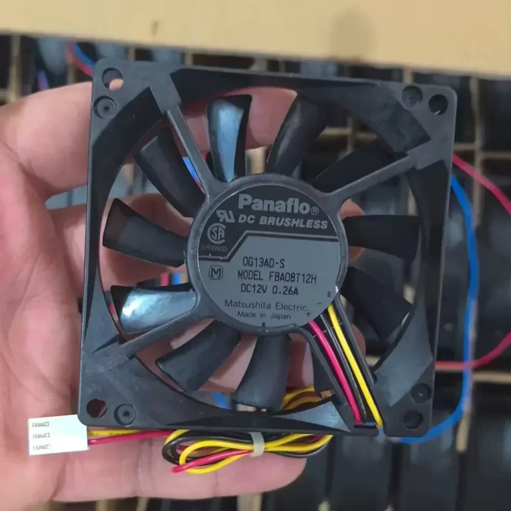 The Panasonic Panaflo FBA08T12H is a high-performance 80mm DC axial fan engineered for demanding industrial thermal management applications. Utilizing Panasonic’s specialized bearing technology, this unit offers a superior balance between high airflow and low acoustic noise, making it a preferred choice for precision electronics and industrial control systems.