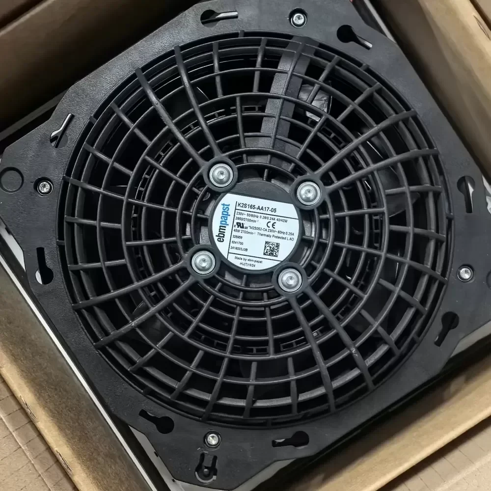 The K2S165-AA17-05 is a high-performance cabinet cooling fan engineered for Rittal SK 3241.100 chassis systems. Manufactured to exact Original Engineering standards, this centrifugal fan unit ensures optimal thermal management within densely packed electrical enclosures, preventing component degradation due to heat accumulation.