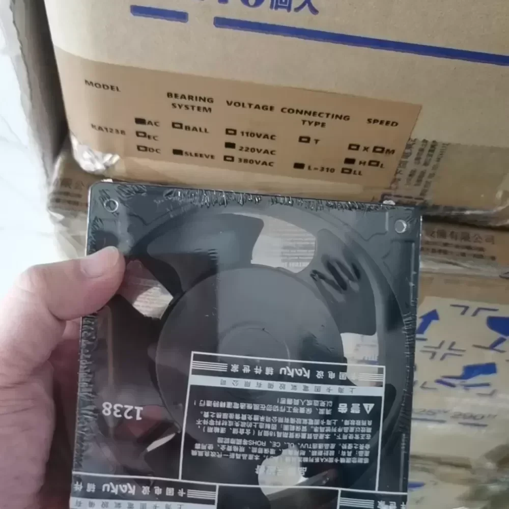 The KAKU KA1238HA2 is a heavy-duty AC axial cooling fan engineered for rigorous thermal management in industrial enclosures. Built to exact Original Engineering standards, this 120mm unit ensures optimal airflow and system reliability for critical electronic components operating in continuous-duty environments.