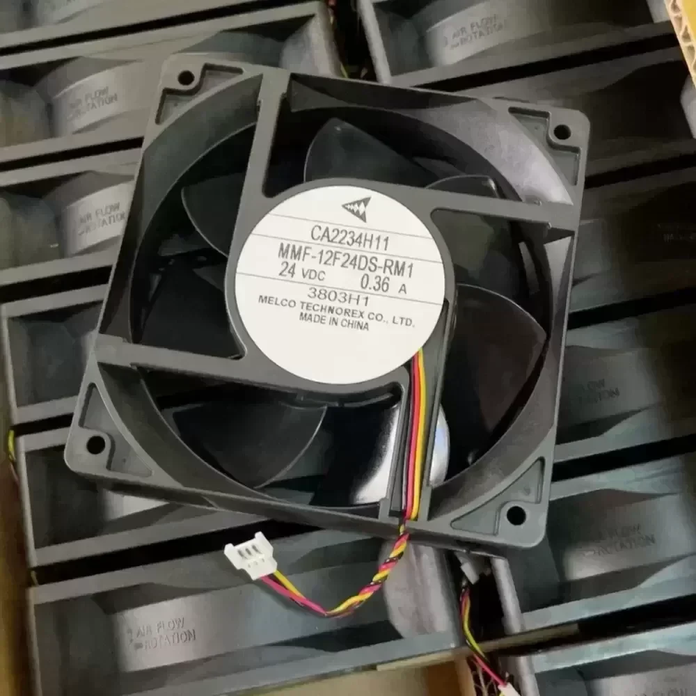 Brand new original Mitsubishi inverter cooling fan MMF-12F24DS-RM1 24V 0.36A 120×120× 38mm size with original lead interface in stock, quality assurance free of postage