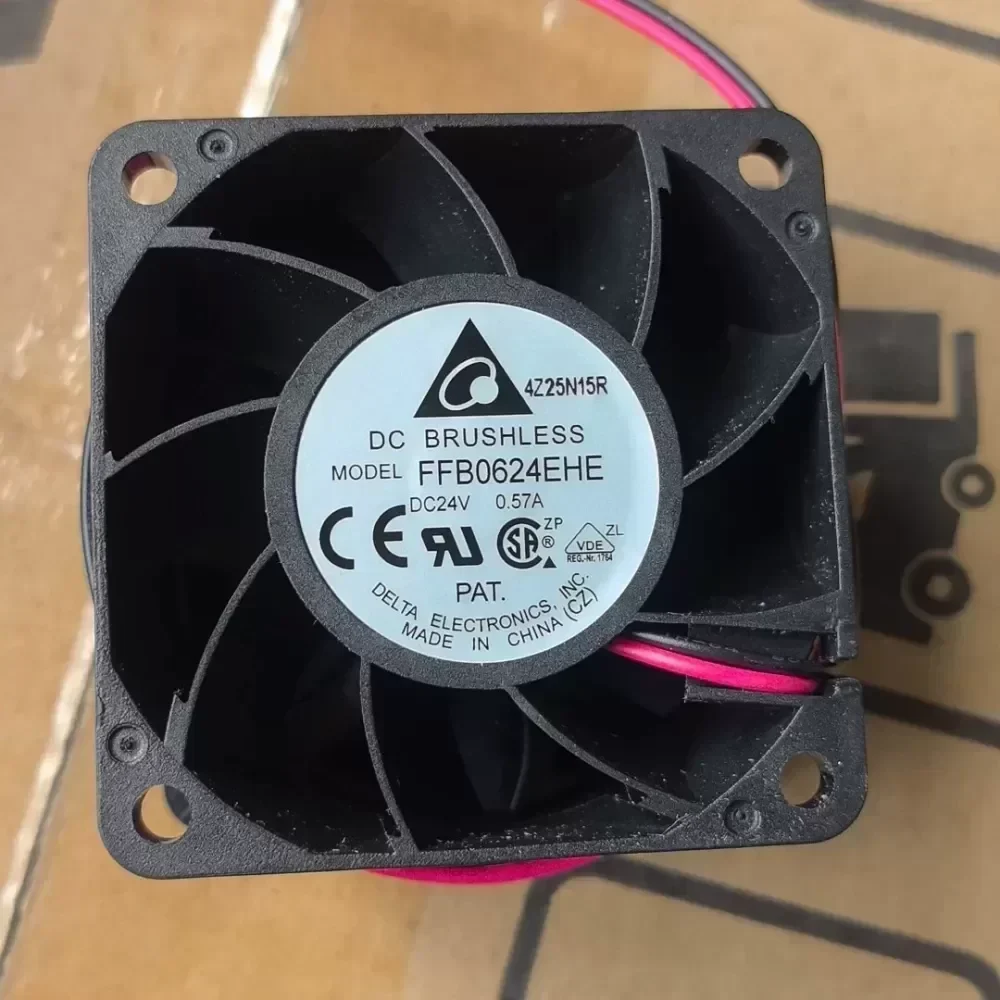 The Delta Electronics FFB0624EHE is a high-performance DC axial fan engineered for rigorous thermal management in industrial power electronics and automation systems. As part of the FFB series, this unit features a 60x60x38mm form factor, significantly deeper than standard 25mm fans, allowing for a high-torque motor and aggressive blade geometry designed to overcome high static pressure resistance. The ‘EHE’ designation indicates an Extra High-Speed configuration, utilizing a precision Dual Ball Bearing system to sustain operation at 8000 RPM, ensuring rapid heat dissipation for critical components. This model includes a 3-wire interface with a tachometer signal output for real-time speed monitoring and failure detection.