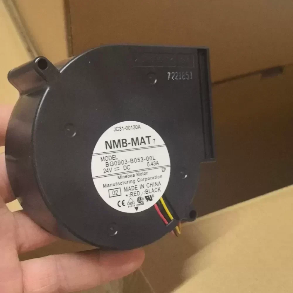 The NMB-MAT BG0903-B053-00L is a high-performance 24 VDC centrifugal turbo blower engineered for precision industrial cooling. Manufactured by MinebeaMitsumi, this 9733 series blower is designed to deliver high static pressure, making it an essential component for systems with high airflow resistance.