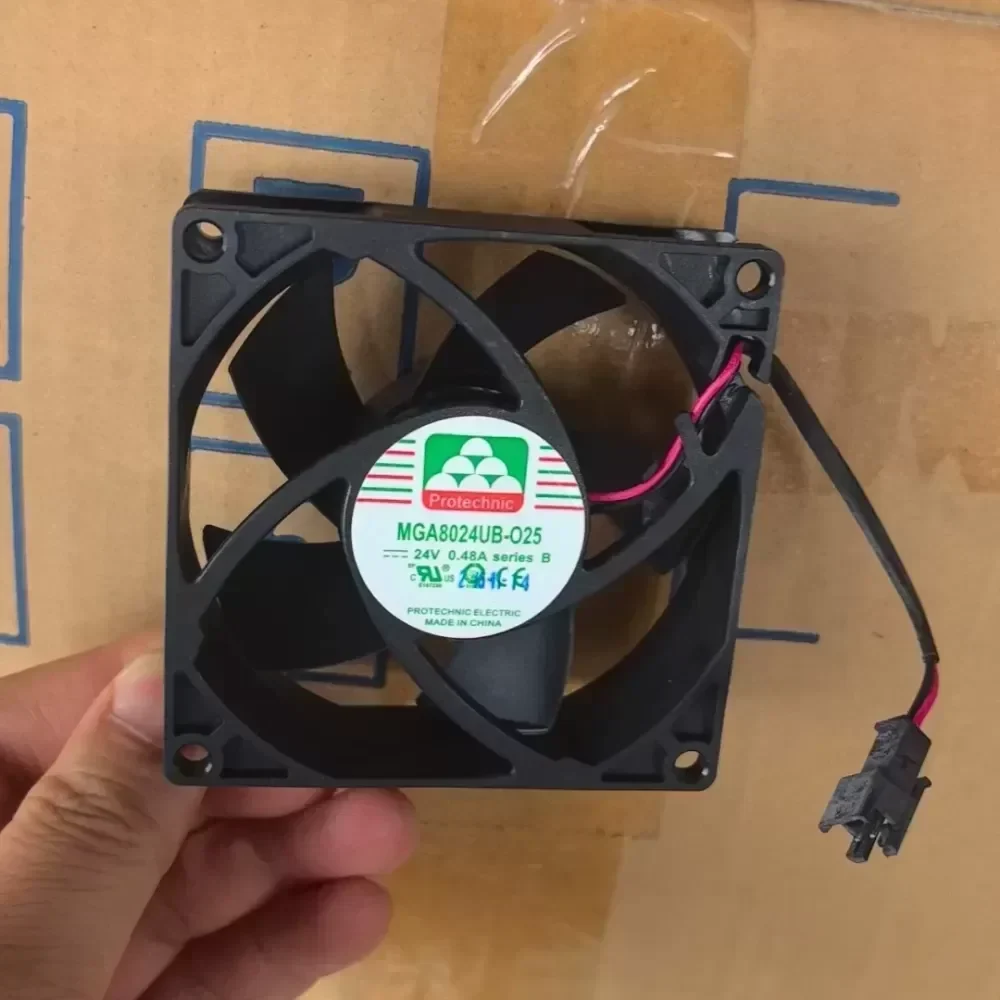 The Protechnic MGA8024UB-O25 is a high-performance DC axial fan engineered specifically for demanding thermal management applications requiring high static pressure and extended service life. This unit features Original Engineering design standards optimized for forced-air cooling in industrial electronics, utilizing a robust dual ball bearing system to ensure reliability under continuous load.