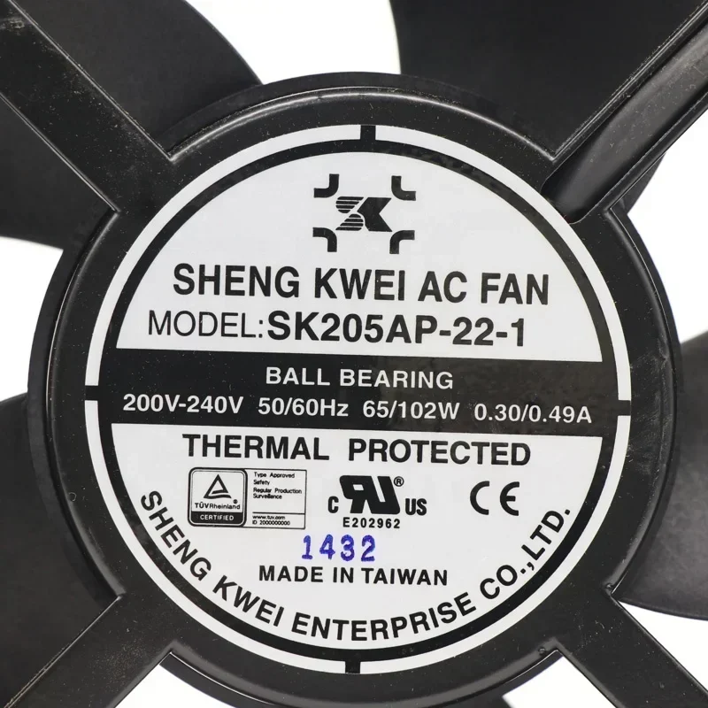 SHENG KWEI SK205AP-22-1 240V AC 620CFM 2850rpm 65W 0.49A 620CFM 2850RPM Ball Bearing Cabinet Axial Flow Cooling Fan