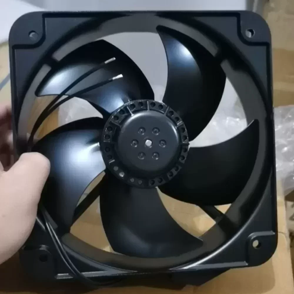 This specific model is critical for heat dissipation in large-scale variable frequency drive (VFD) cabinets and industrial welding equipment where plastic impellers may deform under thermal stress. The metal blade design ensures reliable operation in high-vibration environments, effectively removing waste heat to maintain system efficiency and prevent thermal shutdown of sensitive electronics.