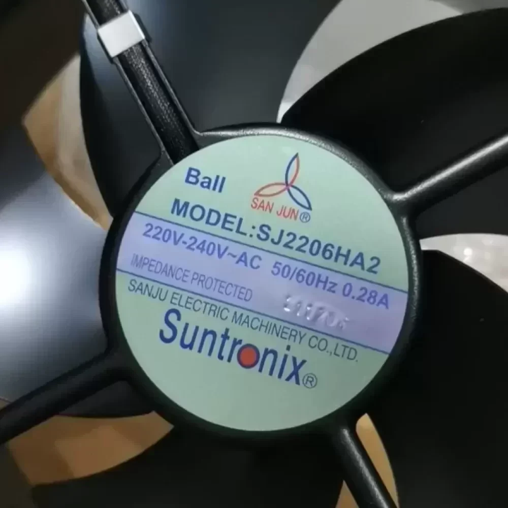 The Taiwan Sanju SJ2206HA2 is a robust AC axial fan engineered for high-capacity thermal regulation in industrial machinery and power distribution systems. Designed with a heavy-duty die-cast aluminum frame and a metal impeller, this model withstands harsh operating environments while delivering superior airflow performance. The fan utilizes a capacitor-run induction motor optimized for 220V/240V AC operation, ensuring consistent rotational stability and longevity. Its square form factor allows for seamless integration into standard ventilation panels and server cabinets, providing a reliable solution for critical cooling requirements.