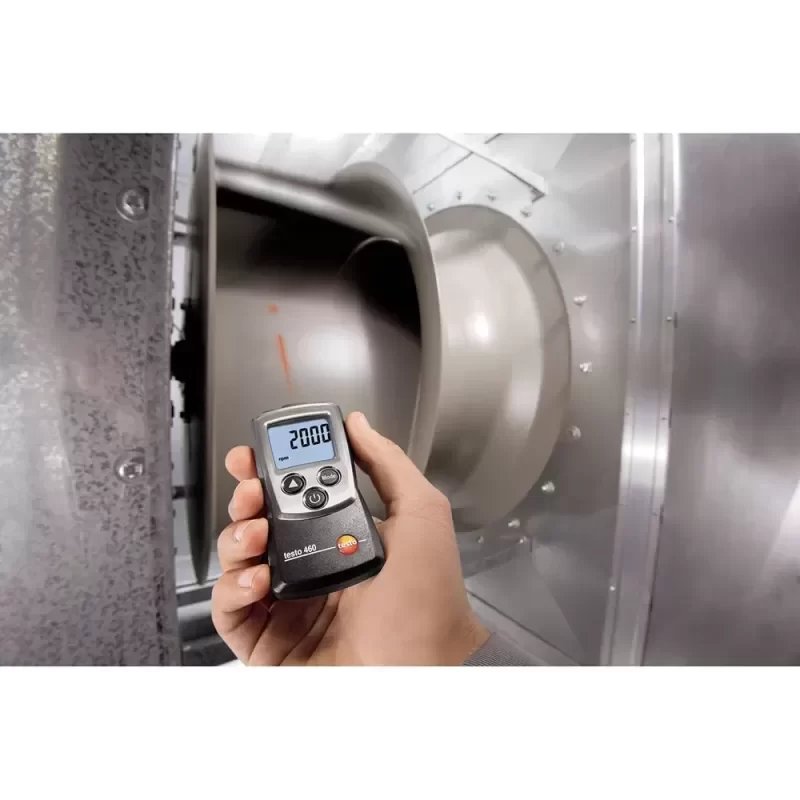 The Testo 460 provides critical diagnostic capabilities for predictive maintenance protocols. It is specifically deployed for monitoring the rotational speed of HVAC fans, conveyor belt drive shafts, and high-speed centrifugal pumps. By enabling non-contact measurement, technicians can safely verify motor performance and identify slip or mechanical degradation without halting production lines or risking entanglement.