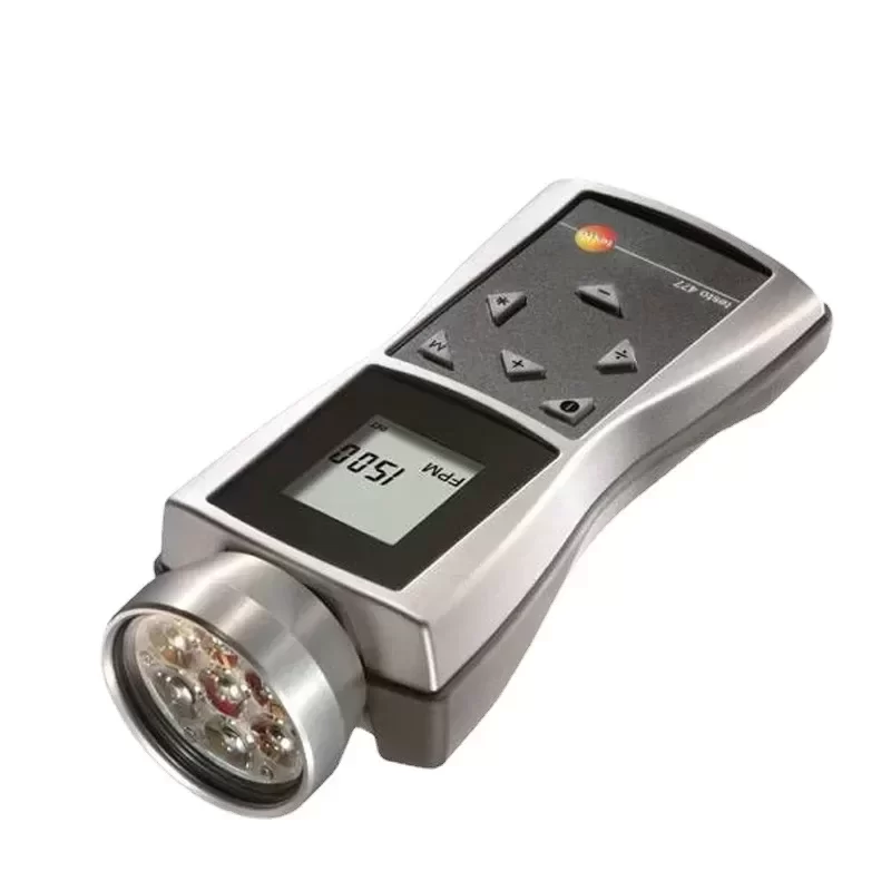 The Testo 477 is an advanced electronic handheld LED stroboscope engineered for the precise measurement of rotational speeds and the inspection of high-frequency moving parts. Utilizing Original Engineering from Testo, this instrument allows for non-contact RPM measurement up to 300,000 flashes per minute (FPM), enabling technicians to conduct critical vibration analysis and motion diagnostics without interrupting active industrial processes.