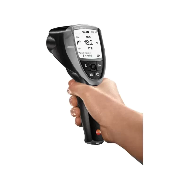 The Testo 835-T1 is an industrial-grade infrared and contact thermometer designed for high-precision temperature monitoring in complex thermal applications. Engineered for maximum accuracy at safe distances, this instrument features a 50:1 distance-to-spot ratio and a 4-point laser marking system, ensuring precise targeting of small objects or distant components. The integration of a Type K thermocouple input allows for simultaneous contact measurement and emissivity determination, making it a critical diagnostic tool for HVAC, manufacturing, and electrical maintenance sectors.