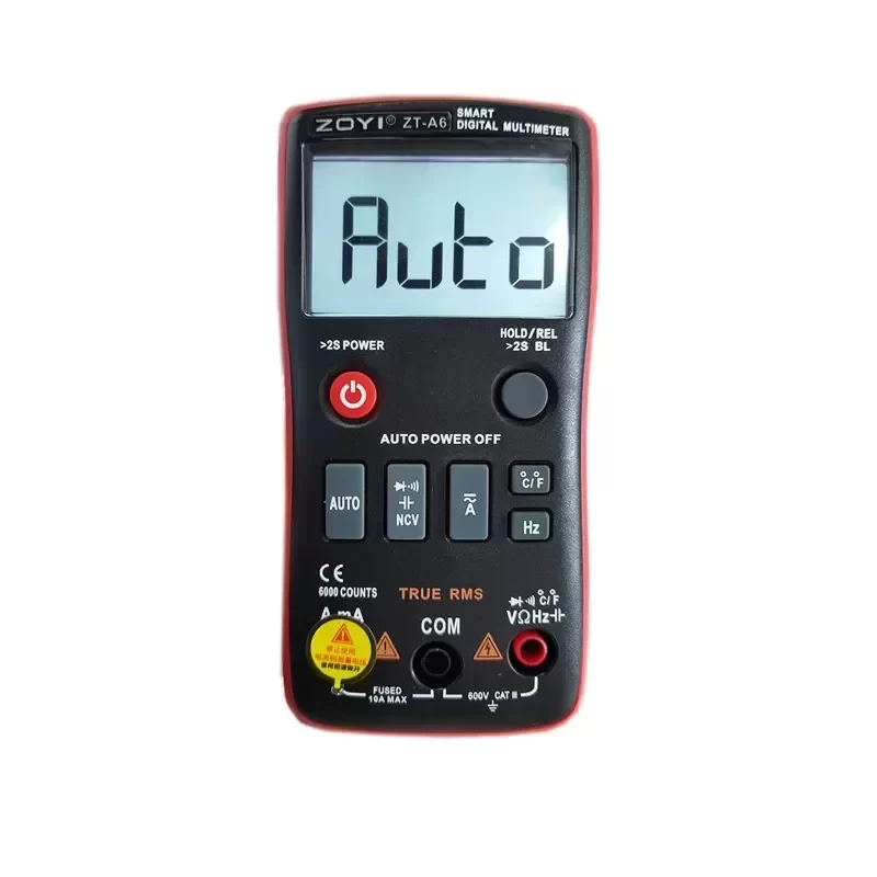 The ZOYI ZT-A6 is a high-precision, 6000-count smart digital multimeter engineered for rapid electrical diagnostics and field maintenance. This instrument utilizes intelligent input recognition technology to automatically distinguish between AC/DC voltage, resistance, and continuity signals, eliminating the need for manual dial selection and reducing operator error. Housed in a durable, impact-resistant ABS enclosure, the ZT-A6 is designed for portability without compromising measurement density. It adheres to Original Engineering standards for safety and accuracy, providing reliable performance in both commercial and residential electrical environments. The unit features a palm-sized form factor with a clear LCD interface, ensuring readability in variable lighting conditions.